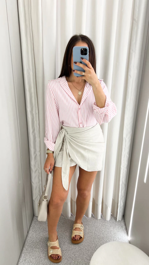 DESCRIÇÃO: SAIA CURTA ESTILO LINHO, CONFECCIONADA EM TECIDO LEVE E CONFORTÁVEL, COM TOQUE NATURAL E VISUAL SOFISTICADO. MODELO TRANSPASSADO QUE PROPORCIONA AJUSTE FLEXÍVEL AO CORPO, VALORIZANDO A SILHUETA COM ELEGÂNCIA. POSSUI FAIXA PARA AMARRAÇÃO NA CINTURA, PERMITINDO REGULAR A PEÇA DE ACORDO COM A PREFERÊNCIA E O BIOTIPO. TAMANHO ÚNICO, GERALMENTE VESTE DO 34 AO 42, GRAÇAS À SUA MODELAGEM VERSÁTIL E AJUSTÁVEL. IDEAL PARA COMPOR LOOKS CASUAIS OU MAIS PRODUZIDOS COM CHARME E CONFORTO. PEÇA PRÁTICA, MODERNA E ATEMPORAL, PERFEITA PARA DIVERSAS OCASIÕES.
